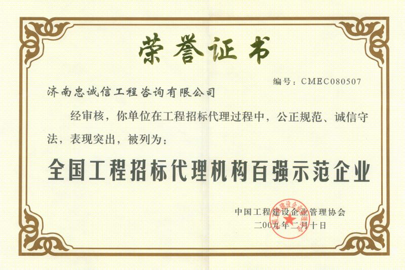 全國工程招標代理機構(gòu)百強示范企業(yè)